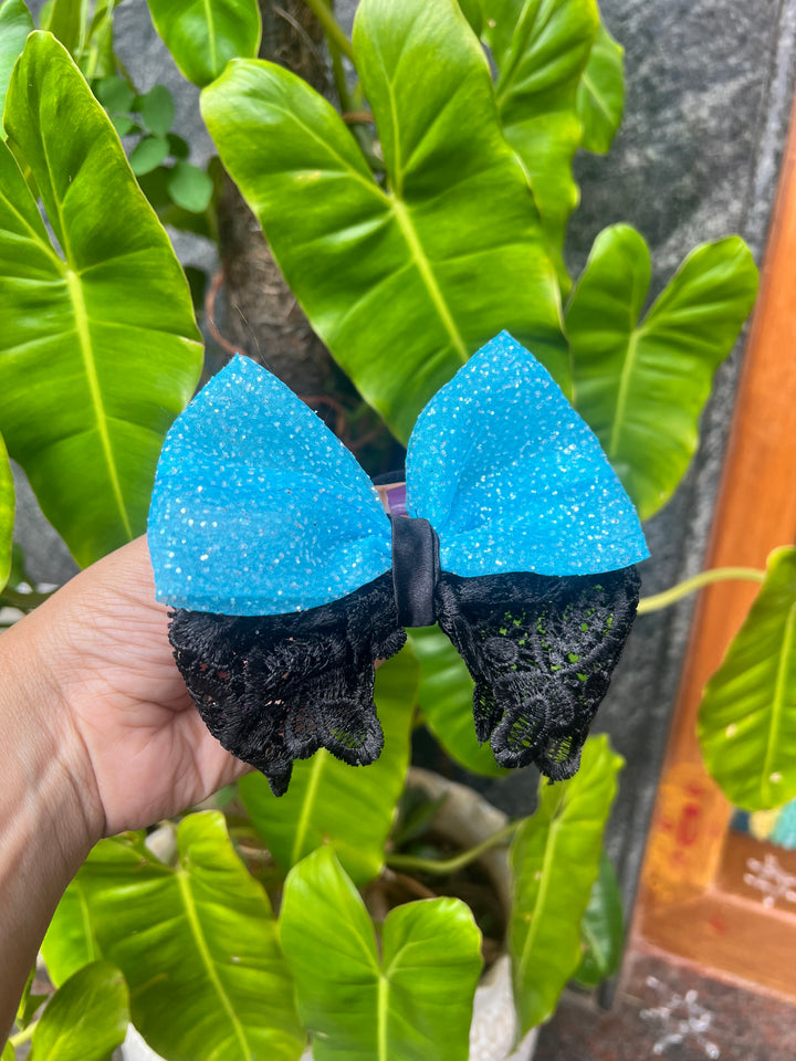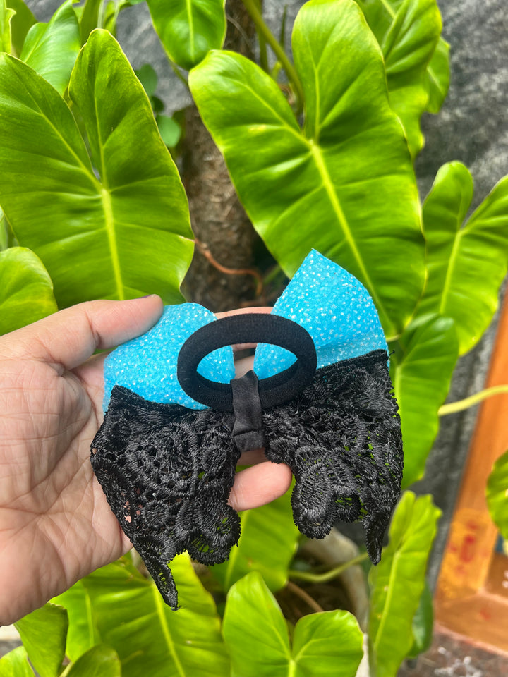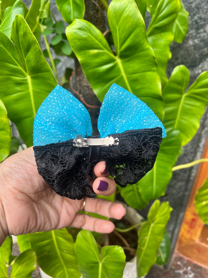 Chic Boo Bow in Blue and black β Handcrafted Hair Accessory