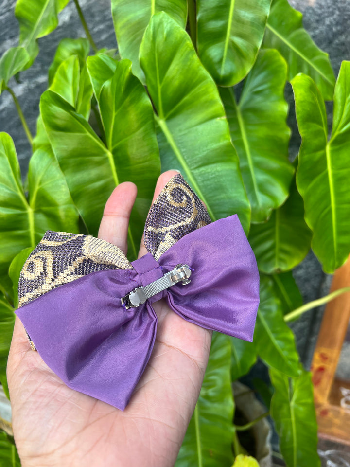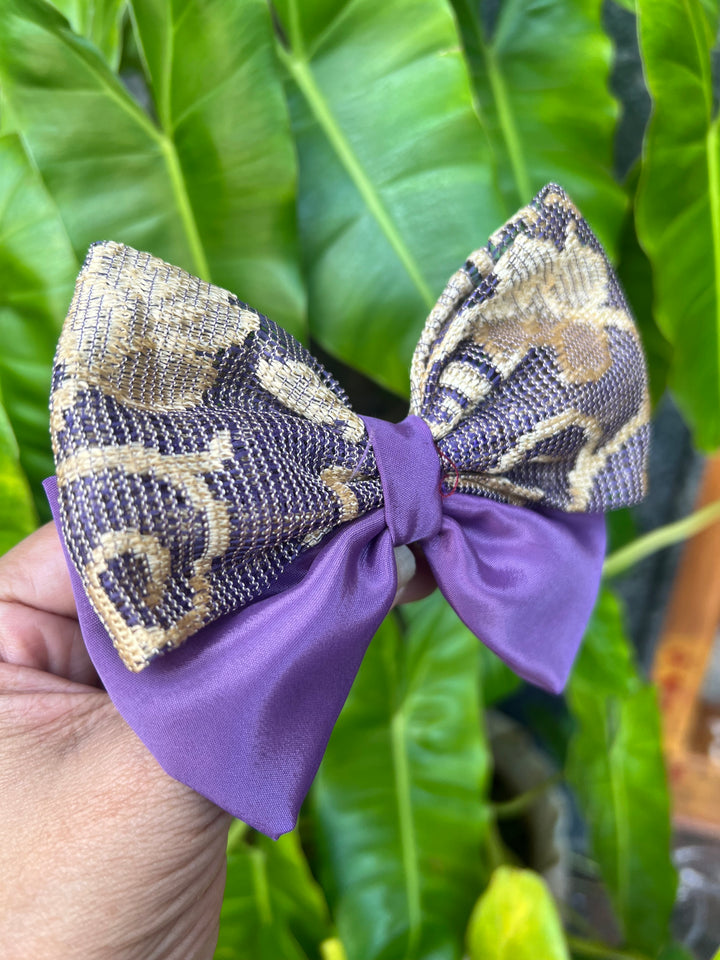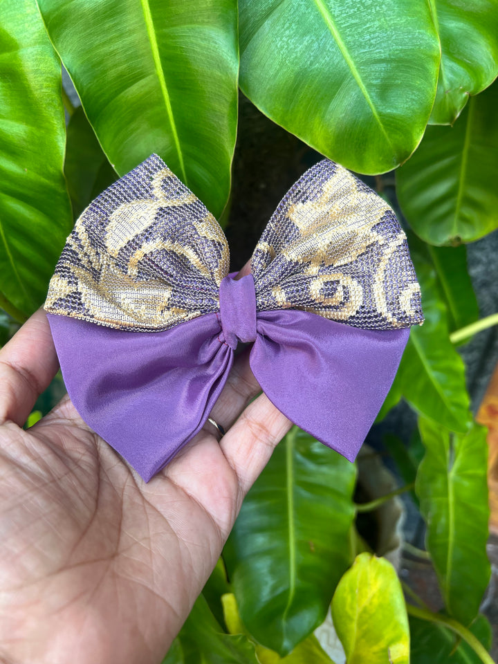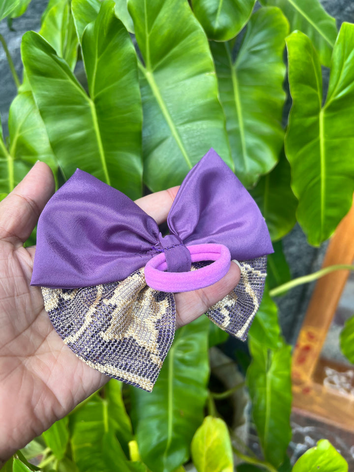 Chic Boo Bow in netted purple and purple– Handcrafted Hair Accessory