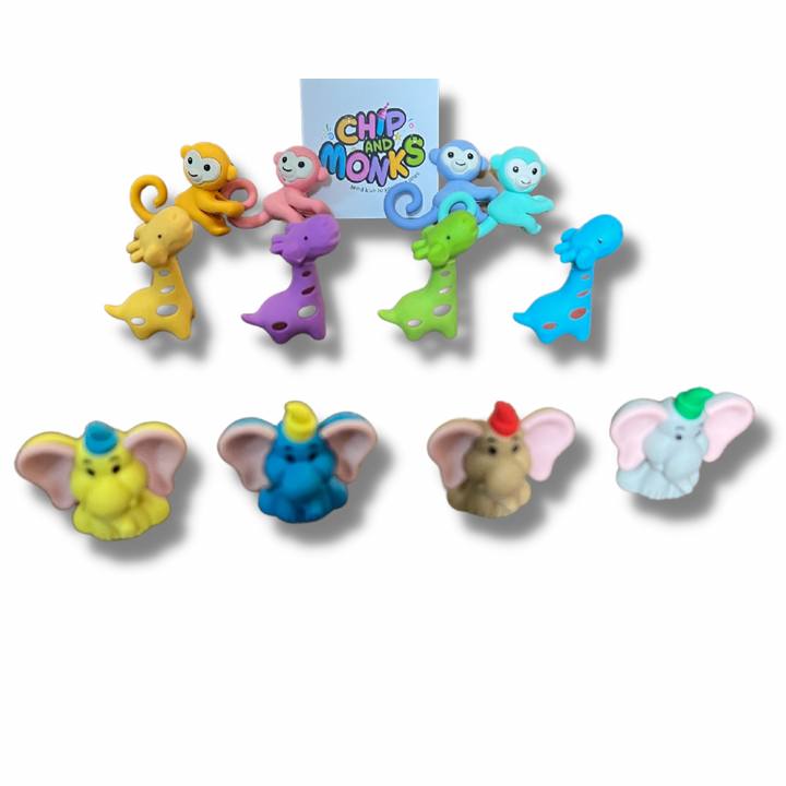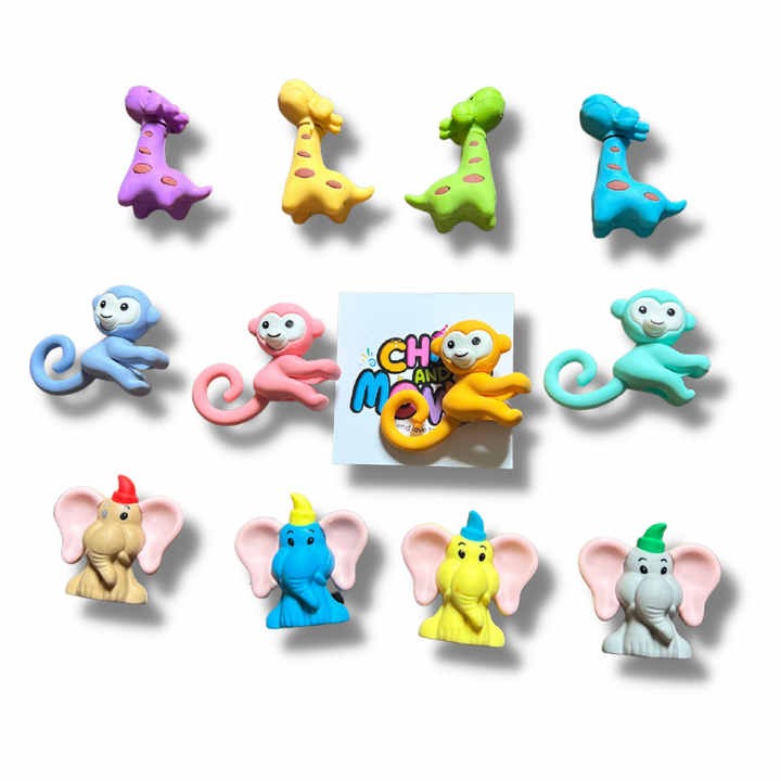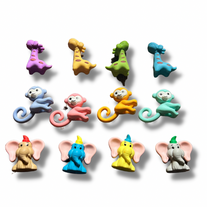 Chipandmonks (Pack of 12 Pcs) Animal Shape Erasers Set for Kids Educational Stationary Kit for Kids (Multicolor)