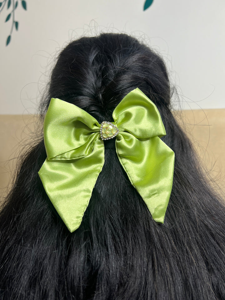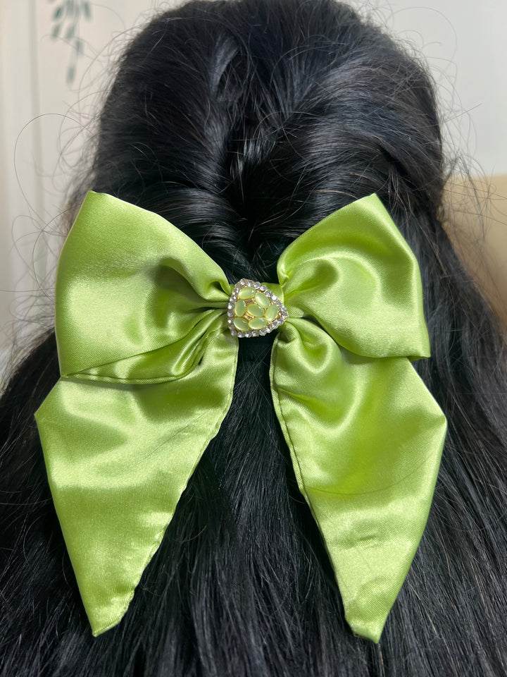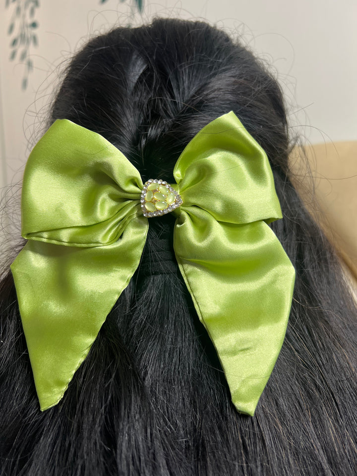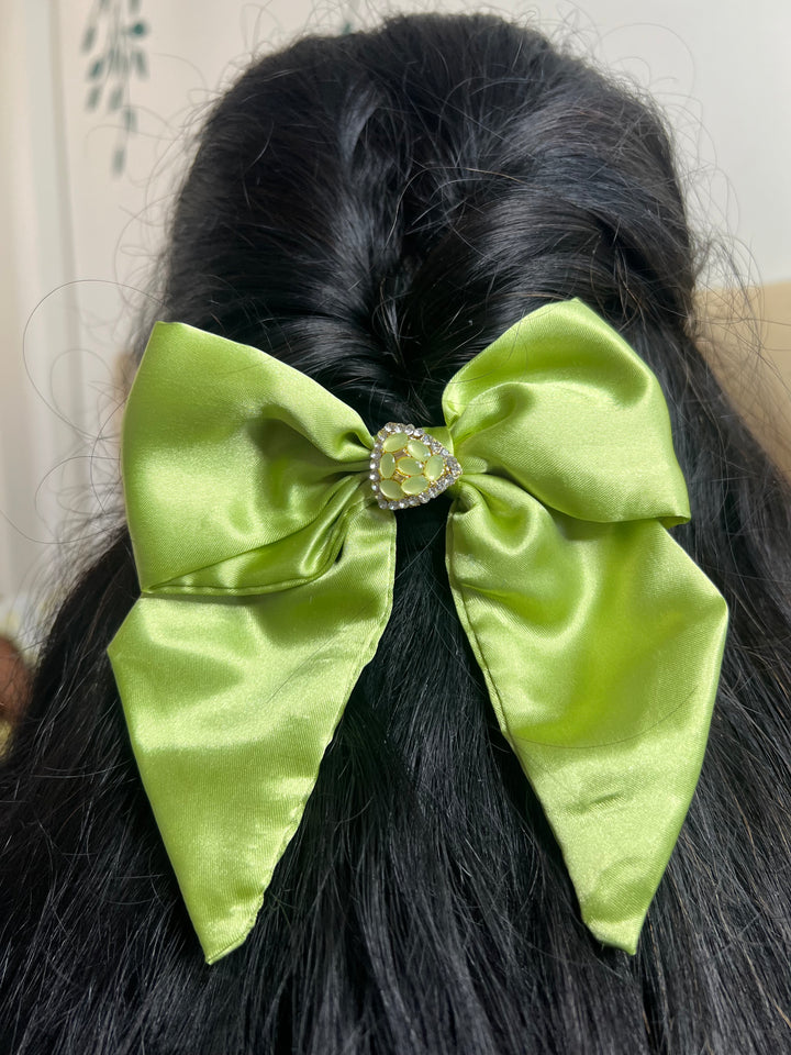 Elegant Parrot Green Flutter Bow – Handcrafted Style Accessory