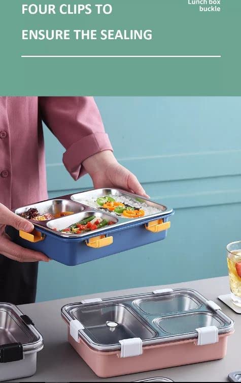 Lunch Box Sealed Leakage Proof Stainless Steel Lunch Box with Fork, Chopstick & Spoon Lid Office Food Container 3 Compartment for School Kids and Adults Not leak proof between compartments (Multi Color)