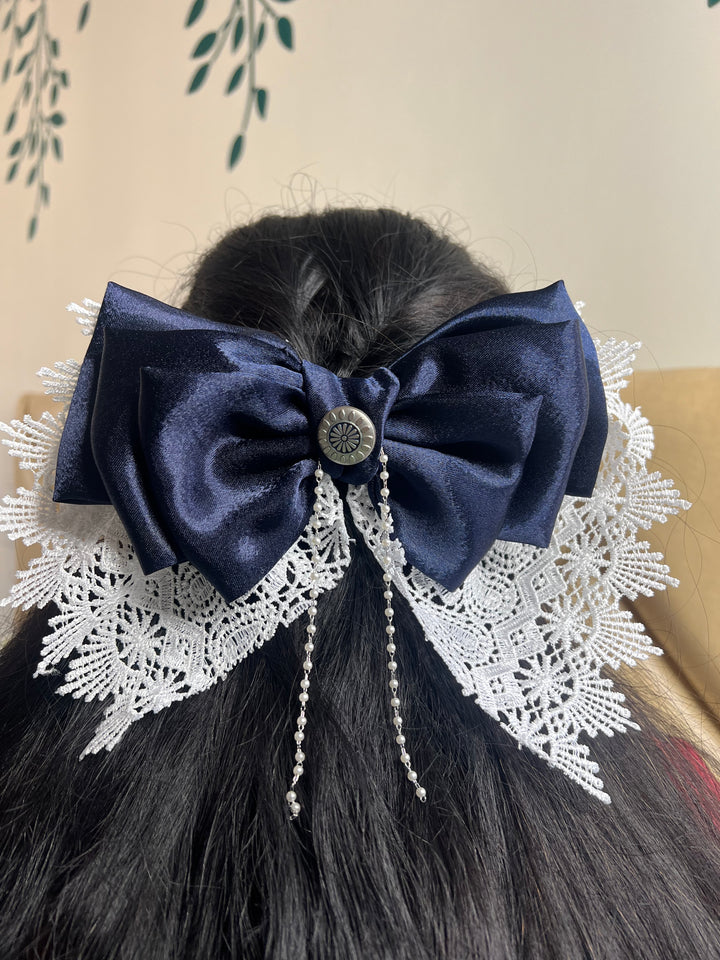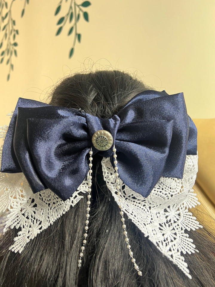 Princess Handcrafted Satin Hair Bow – Luxury Fabric Accessory - Navy blue